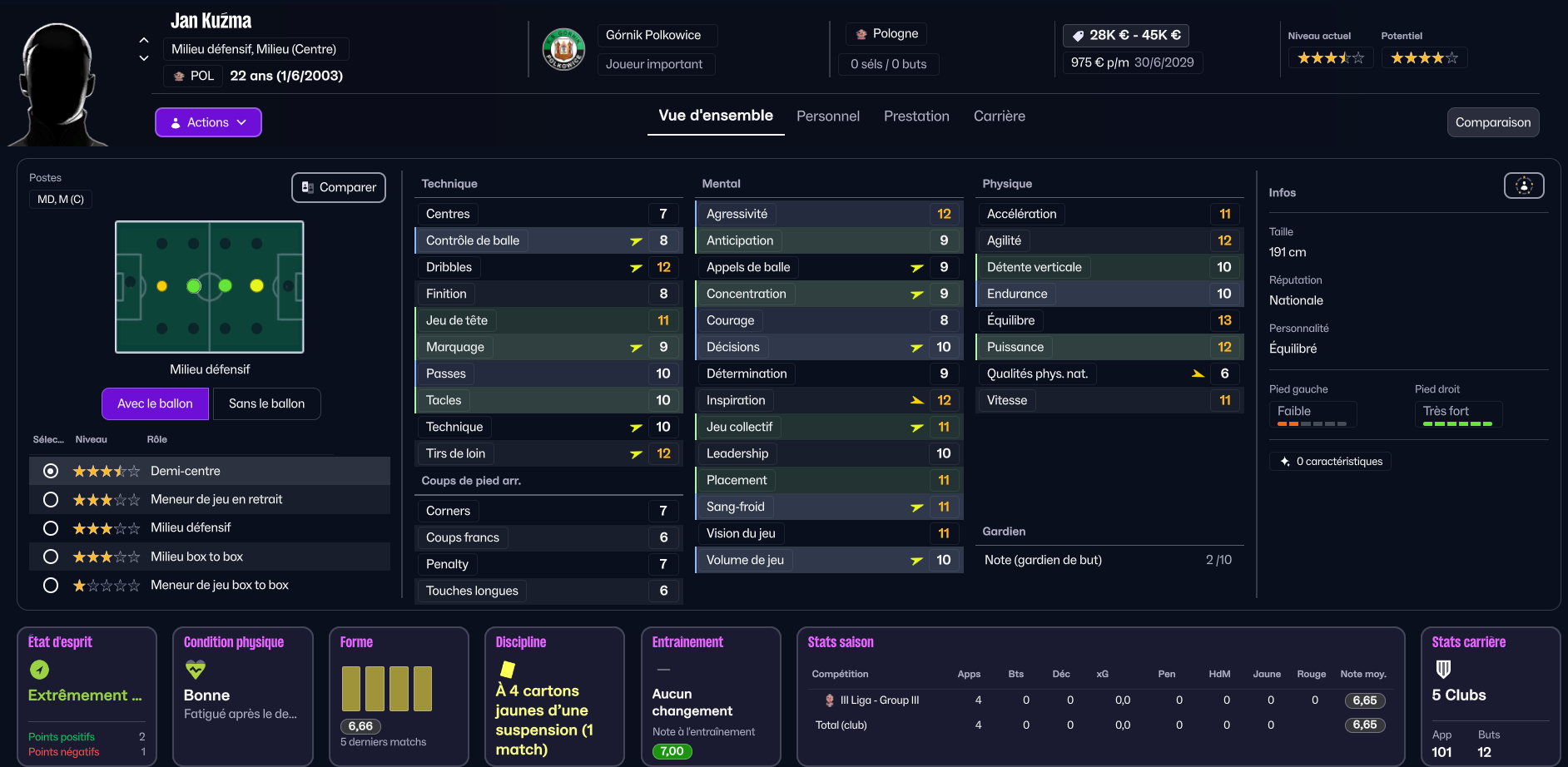 Câest finalement Jan Kuzma, 22 ans, qui a signĂ©. Un gamin athlĂ©tique, disciplinĂ©, et affamĂ© de jeu. Il sâest intĂ©grĂ© en deux jours, parlant peu, courant beaucoup. Tout ce que jâaime.