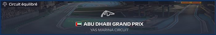 | Au coeur de la Marina dâAbu Dhabi, le circuit offre trois secteurs trĂšs variĂ©s, dotĂ© de deux lignes droites Ă haute vitesse. Le Yas Marina Circuit, est un tracĂ© oĂč les vĂ©hicules Ă©quilibrĂ©s bons Ă moyenne vitesse mais Ă©galement efficace au DRS et Ă haute vitesse seront brillĂ©s. | |