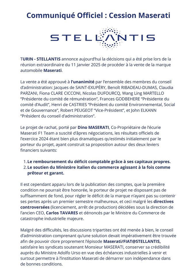 Je suis bien content dâĂȘtre dĂ©barrassĂ© de Stellantis, et jâespĂšre que les mesures prises permettront Ă la marque de renaitre.