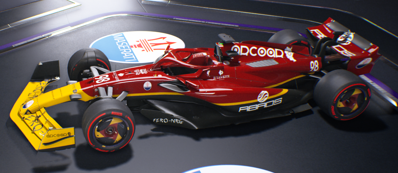 Cette annĂ©e exit le bleu. Jâavais dĂ©cidĂ© dâhonorer la Maserati 250F pilotĂ©e et sacrĂ©e en 1957 par Juan Manuel Fangio. Une touche de jaune sur le bec avec une base de rouge, tout en essayant de ne pas faire trop faire dans le rouge, cette couleur Ă©tant lâidentitĂ© presque exclusive de nos voisins de Maranello. Câest pourquoi toute la partie basse de la monoplace avait Ă©tĂ© laissĂ© en fibre de carbone apparente.