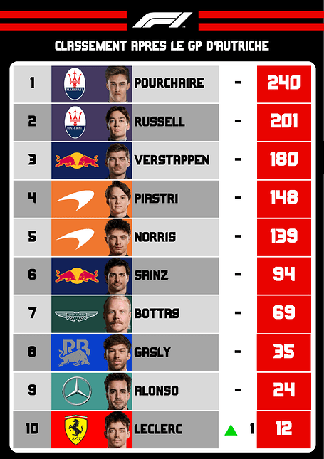 Bearman - Stroll - Gasly - Albon - Tsunoda - Hulkenberg sont dehors.