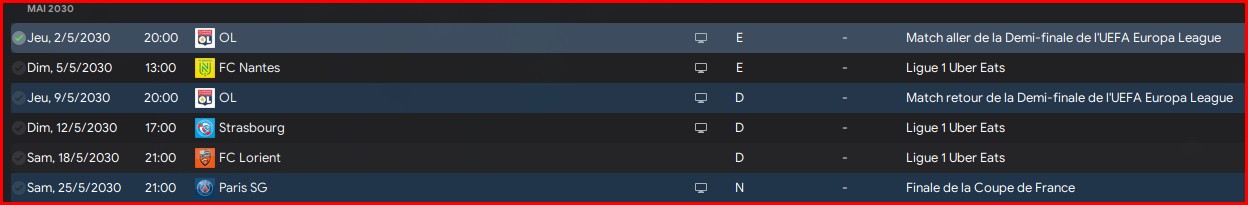 Voila le dernier mois de compétition. Il y a encore une finale de EL qui pourrait se rajouter.