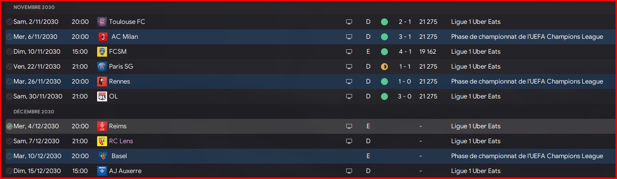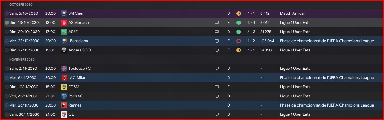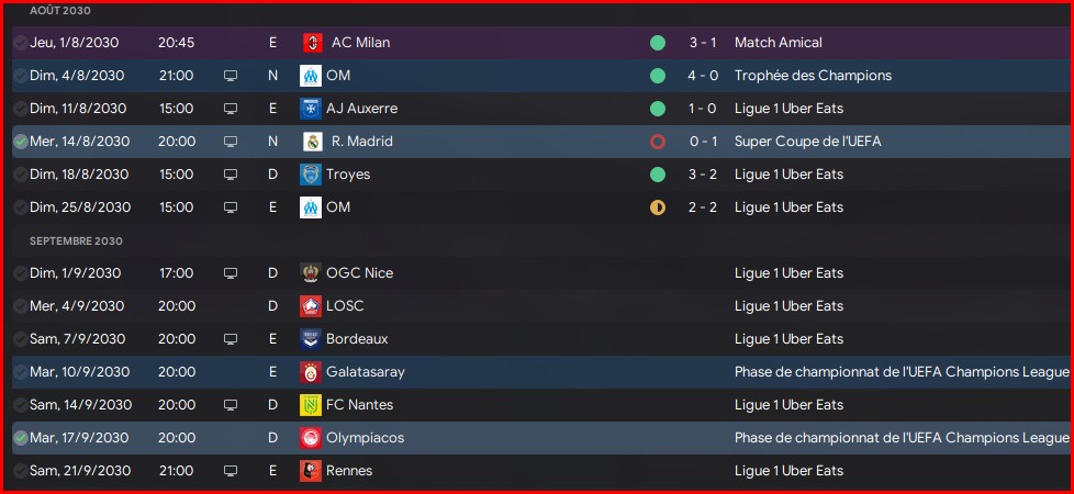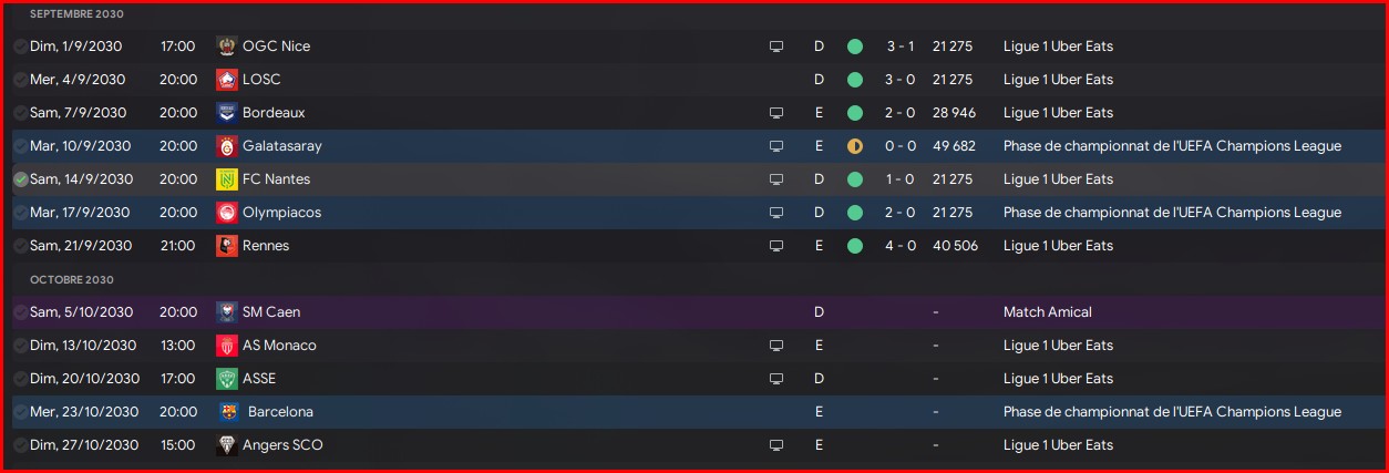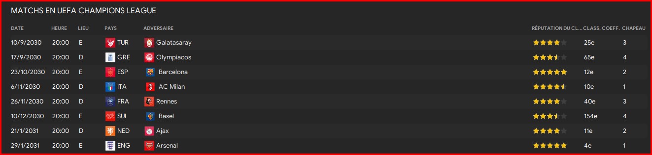Il faudra pas se louper sur les matchs contr Galatasaray, Olympiacos, Rennes et BĂąle. Le reste sera du bonus.