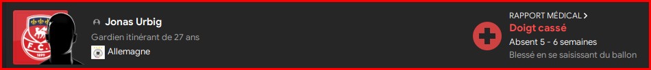 Pour le moment je dois pas avoir une saison sans blessure pour plusieurs semaines de mon gardien ![]()