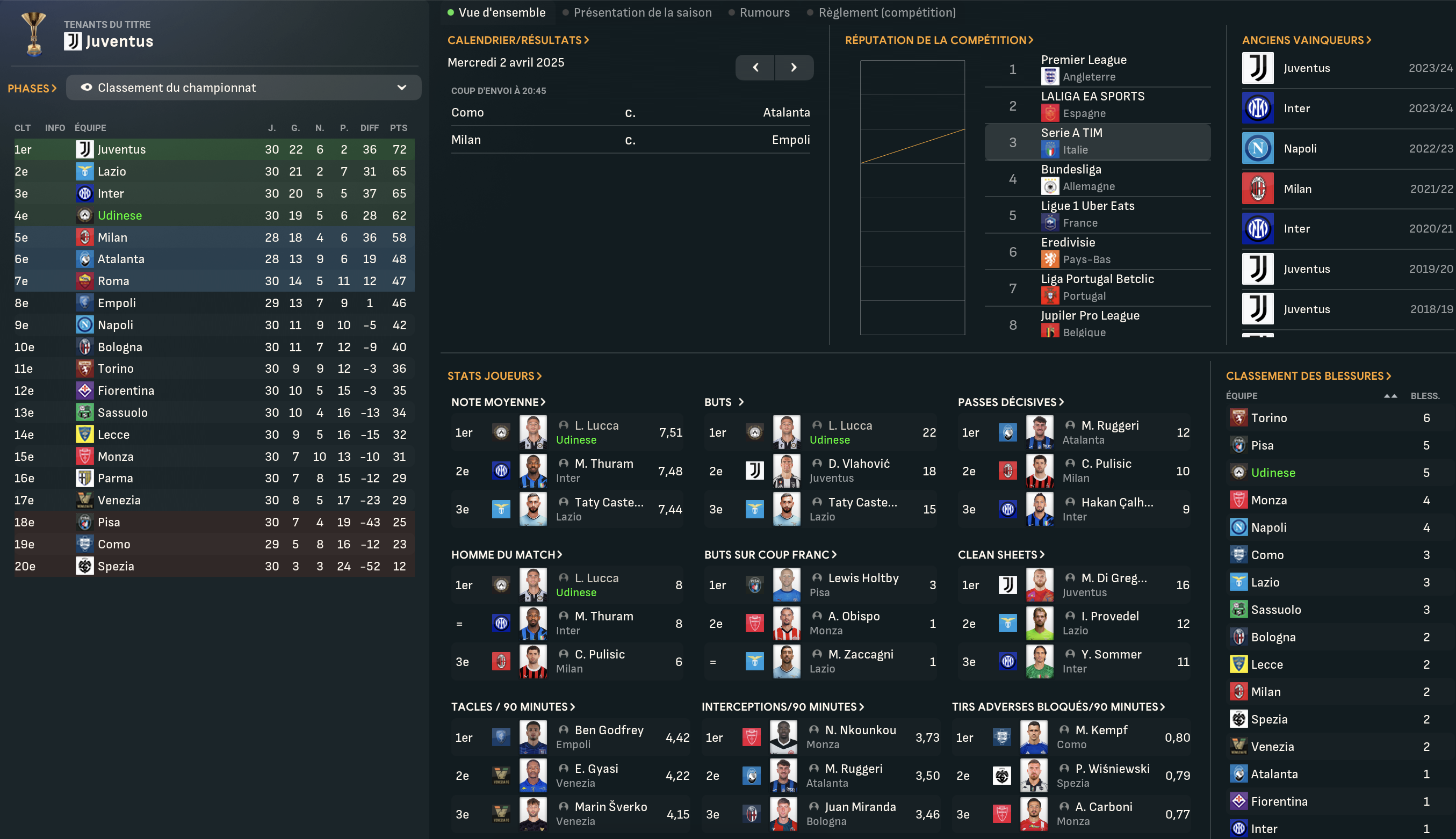 En SĂ©rie A, nous faisons le boulot. On se prend une belle claque Ă Milan contre lâAC Milan mais assez logique. Trop de fatigue, beaucoup de dĂ©ception dâĂȘtre sorti de lâEuropa League, bref juste un petit couac.