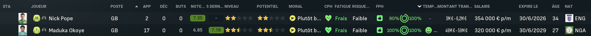 Au rayon des gardiens, je retrouve une bonne connaissance mĂȘme si parfois je me suis arrachĂ© les cheveux avec certaines boulettes⊠Maduka Okoye qui a rejoint le club en provenance de lâUdinese en juin 2024 pour 41,5MâŹ. Il est logiquement le titulaire et suppléé par le vĂ©tĂ©ran Nick Pope. Ce dernier sera en fin de contrat en juin et ne sera pas renouvelĂ©. Il nâa plus le niveau et surtout un gros salaire.