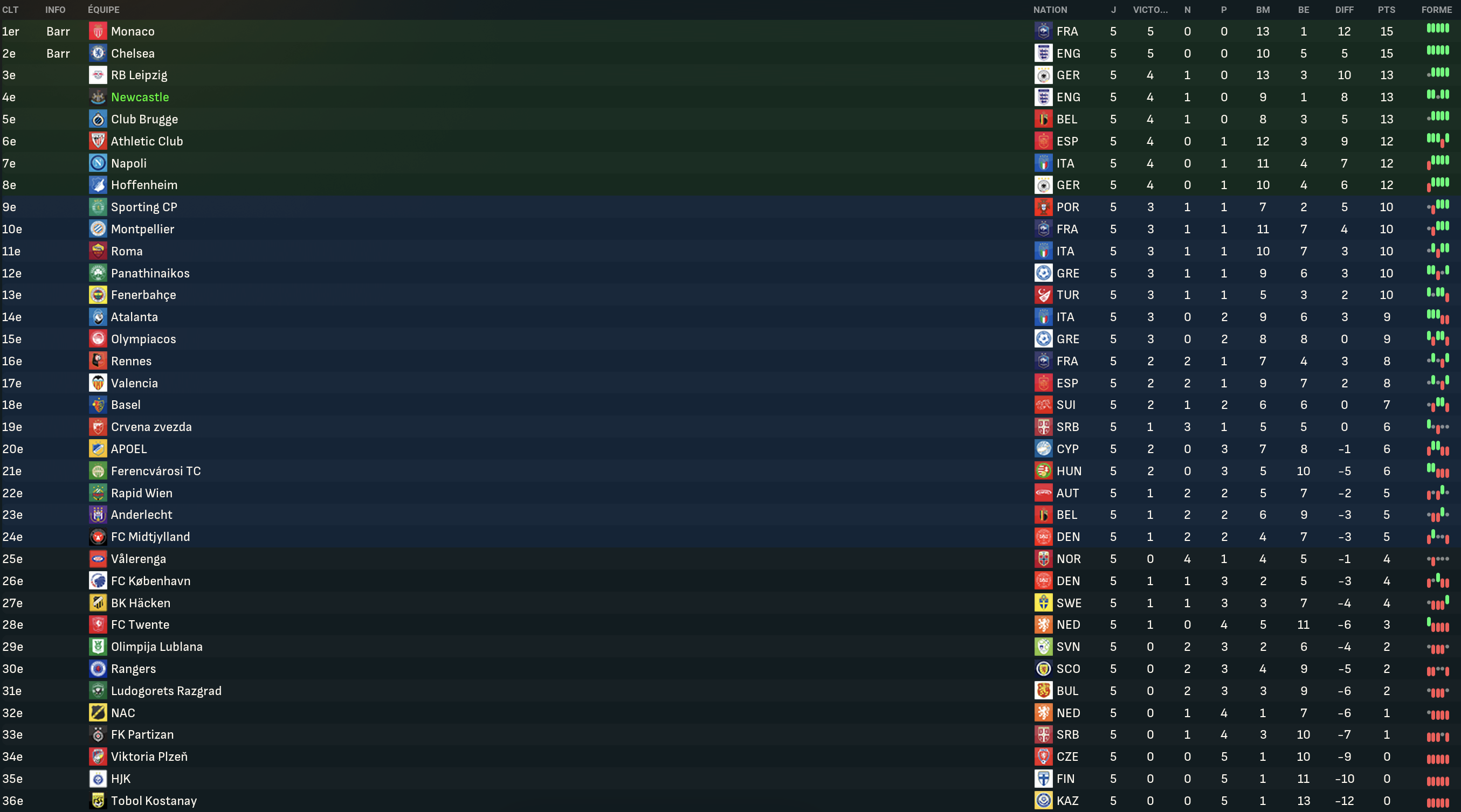 Le club est qualifié en Europa League et pour le moment, les Magpies sont invaincus en 5 matchs avec 4 victoires pour 1 nul.