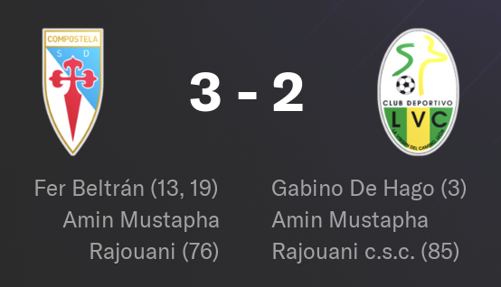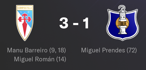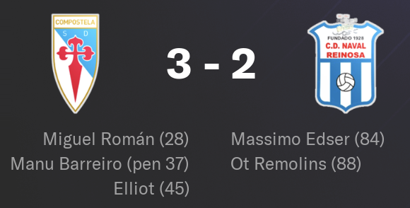 Tout commence Ă domicile face Ă Naval, avec une victoire 3-2. Les Compostellans entament parfaitement la rencontre, imposent leur rythme et mĂšnent rapidement au score. Mais en fin de match, le relĂąchement est palpable. Naval revient dans la partie et pousse jusquâau bout. Heureusement, les hommes de Manuel VĂĄzquez tiennent bon.