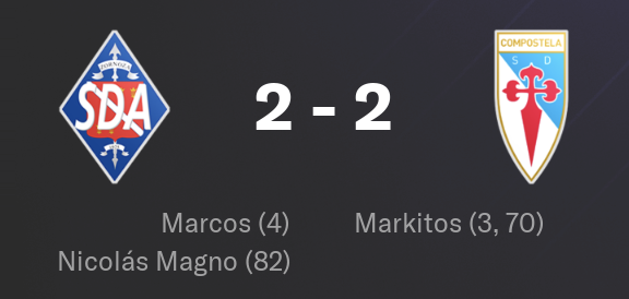 Ă la 75e, Markitos, sur une superbe passe de Juan Carlos derriĂšre la dĂ©fense, rĂ©duit lâĂ©cart mais ce ne sera pas suffisant. Les Compos, bien quâils aient eu quelques occasions, nâont pas pu rivaliser avec la qualitĂ© et lâefficacitĂ© de Leonesa dans ce match.