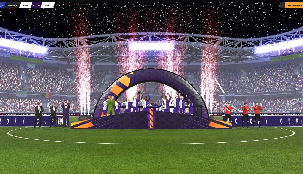 Verdict final, on a cartonné la saison avec 28 victoires, 1 nul, 1 défaite, record total de victoires d’affilés, la jupiler pro league n’est plus trop un soucis, clairement. Et vu les résultats européens qui vont dans le bon sens, c’est tout bon pour la suite ca. Précisons aussi que Piccoli a été élu pour la 2e fois d’affilé Soulier d’or belge, devant Zehnter et Cantona enfin entraineur de l’année en Belgique. J’avais oublié d’en faire une news. A ce stade, avant les playsoffs, Piccoli est toujours meilleurs buteur de Belgique avec 19 buts, devant Frigan de Westerlo a 17 buts. Sishuba est 6e avec 12 buts. Zehnter est 2e nivau passes décisives avec 9 assists. Piccoli est Zehnter trustent les 2 premières places du classement des hommes du matchs avec 7 et 6.