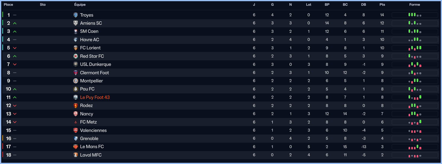 Oui câest pas mal pour un dĂ©but surtout quand on est attendu 14Ăšme sur 17 par la presse. Cela a toujours un petit gout sympa ahah ! AprĂšs je ne dispose pas dâune Ă©quipe de peintre et cela est bien plus simple surtout pour les mises en place tactiques. Bref, tout roule en ce dĂ©but de saison et lâespoir dâune montĂ©e est toujours prĂ©sente: tant mieux.