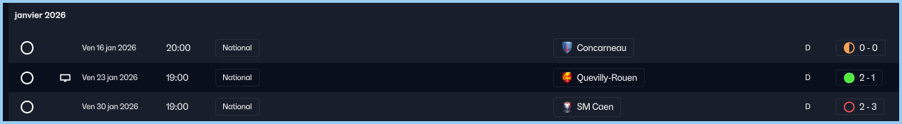 On enchaine avec Quevilly-Rouen, et le dĂ©but de match est terrible. Alors quâon poussait pour marquer, on prend un contre Ă©clair qui finit au fond. Il y a des jours comme ça ou rien ne va. Mais les joueurs ne baissent pas la tĂȘte et continuent de pousser et cela va payer. Nsingi va Ă©galiser avant la pause, et câest Zogba sur corner qui dĂ©livrera les siens en fin de rencontre. Une victoire importante qui permet de ne pas se laisser dĂ©crocher au classement.