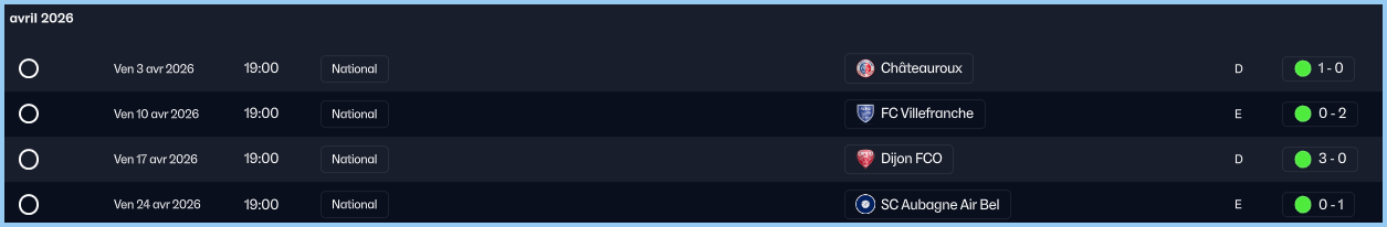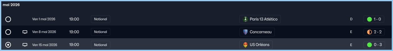 Ce mois est Ă notre avantage puisque nous recevons sur ces 3 matchs. On commence par le match contre Concarneau. DĂ©fensivement la copie est parfaite, rien ne passe et lâon fait preuve dâune soliditĂ© parfaite, mais devant lâĂ©quipe bute sur le gardien adverse et ne rĂ©ussira pas Ă marquer. Un match un peu dĂ©cevant, mais on rĂ©cupĂšre tout de mĂȘme un point.