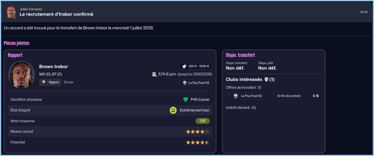 On dĂ©bute le mois avec le renouvellement de notre gardien titulaire Mathis Carvalho. Il a Ă©tĂ© trĂšs sĂ©rieux et mĂ©rite de continuer lâaventure Ă nos cĂŽtĂ©s. Yoann Gourcuff a personnellement demandĂ© sa prolongation, ce qui prouve son implication auprĂšs de son groupe. Et mĂȘme si rien nâest fait, il faut prĂ©parer la saison prochaine et ce quoi quâil arrive.