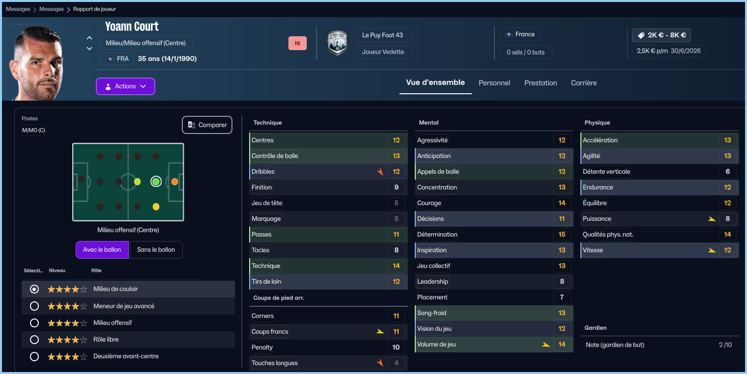 A peine la nouvelle annĂ©e est arrivĂ©e que nous officialisons lâarrivĂ©e de Yoann Court, qui sâentrainait au club depuis 2 mois gratuitement. Une belle pioche malgrĂ© son Ăąge avancĂ© et nul doute quâil aura un impact immĂ©diat dans le jeu. Cela fait suite au difficultĂ© de Karim CissĂ© qui ne semble pas ĂȘtre Ă la hauteur des attentes que Yoann Gourcuff a faite sur lui.
