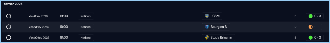 On termine avec un dĂ©placement sur le terrain du Stade Briochin. On va faire preuve une nouvelle fois dâun rĂ©alisme parfait en terrassant une Ă©quipe qui joue pour sa survie. Depuis lâarrivĂ©e de Yoann Court, je trouve lâĂ©quipe plus propre techniquement et je ne pense pas que ce soit un hasard. On termine ce mois de fĂ©vrier sur 2 victoires et 1 nul.