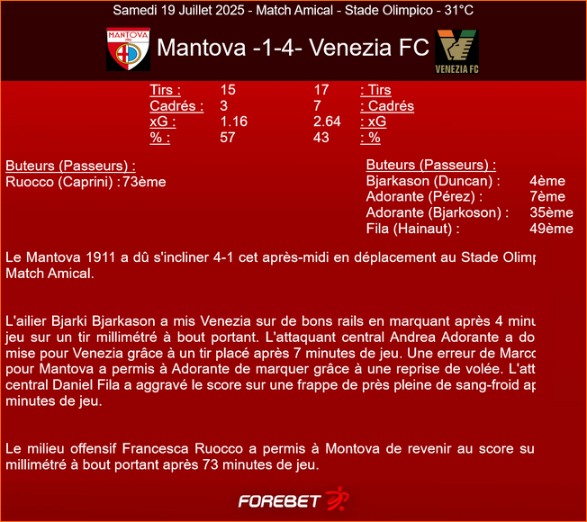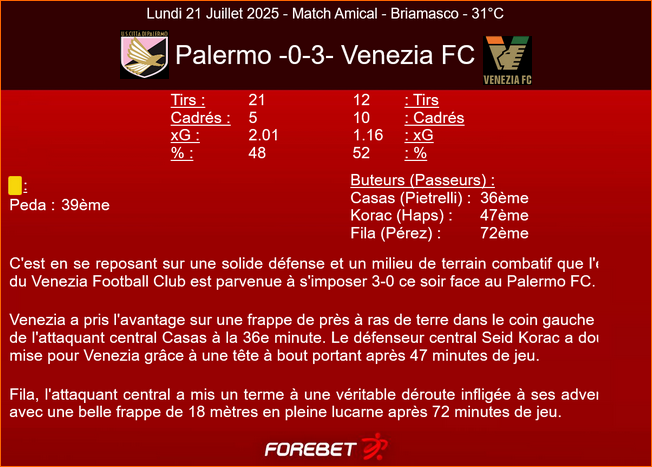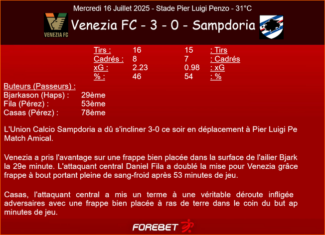C’est l’une des tactiques que je vais utilisée pour Venezia FC après en fonction de comment cela se passe en match, la tactique peut encore évoluer.