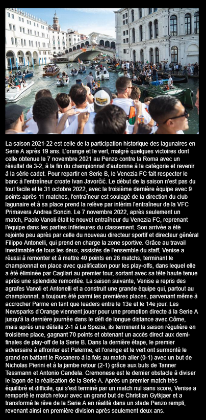 Je suis d’originaire de Vérone qui est à 1h25 de route de Venise. Et comme la ville de Venise est une ville que j’adore entre le pont Rialto, Piazza San Marco, Palais des Doges et les gondoles mon choix c’est porté sur le Venezia FC pour débuter cette story.