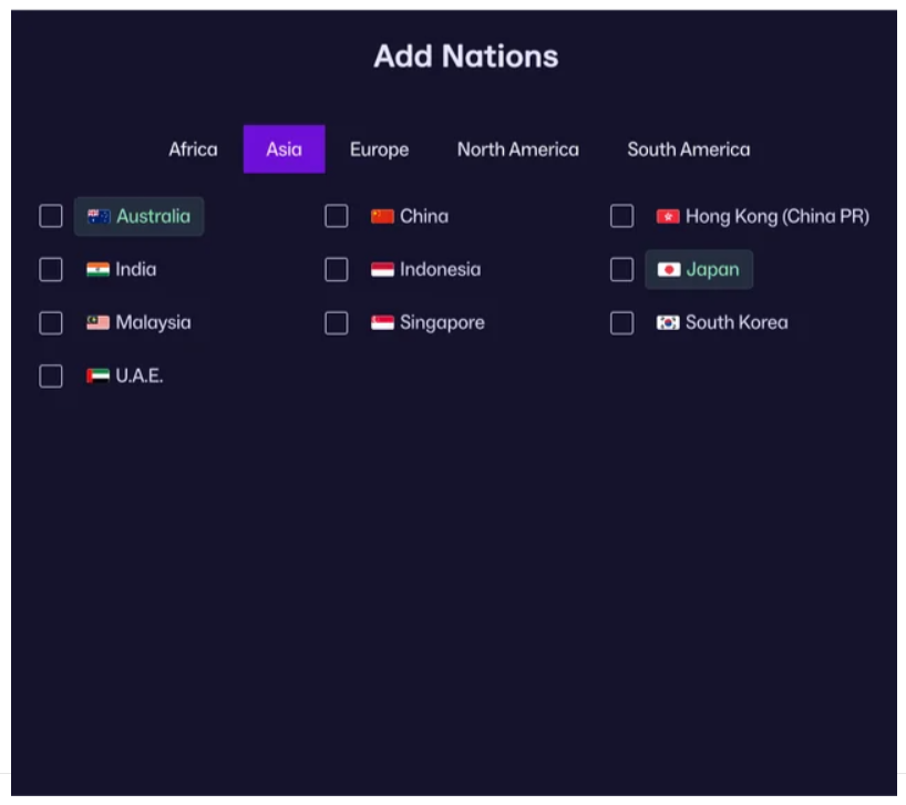 Les nations jouables dans FM 26 dans la version alpha du jeu : Ajout de la Lituanie des Emirats et de L’Egypte