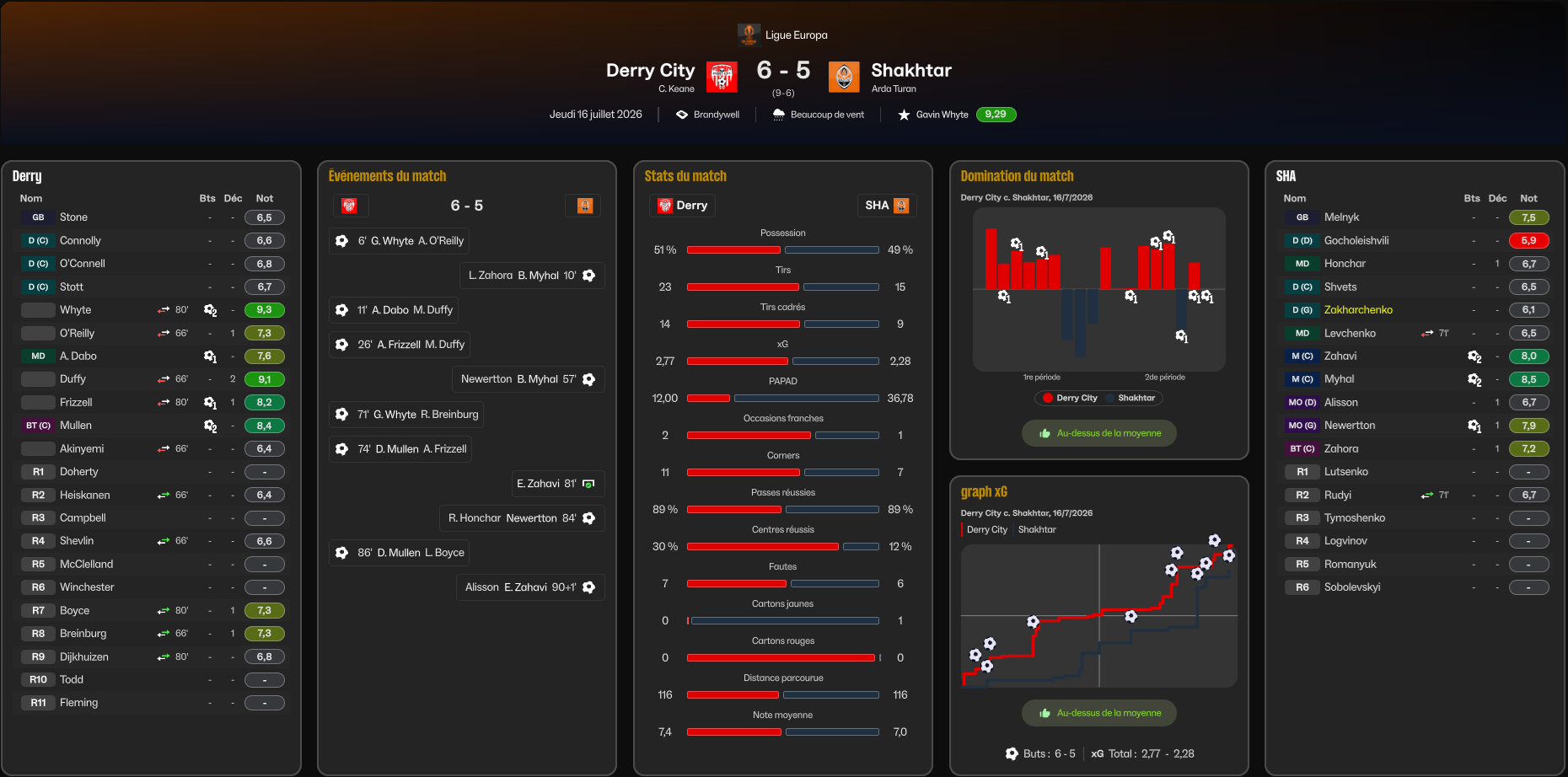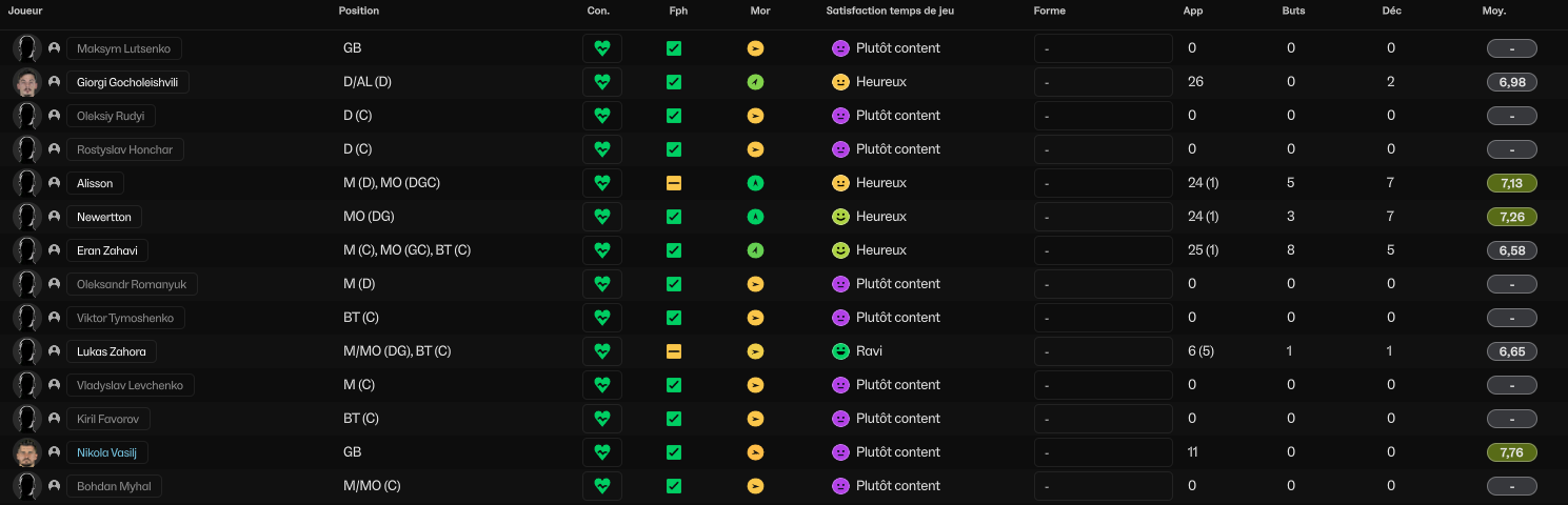 Big up au gardien ukrainien qui finit avec une trÚs honorable note moyenne de 7.5 malgré SIX buts dans la tronche