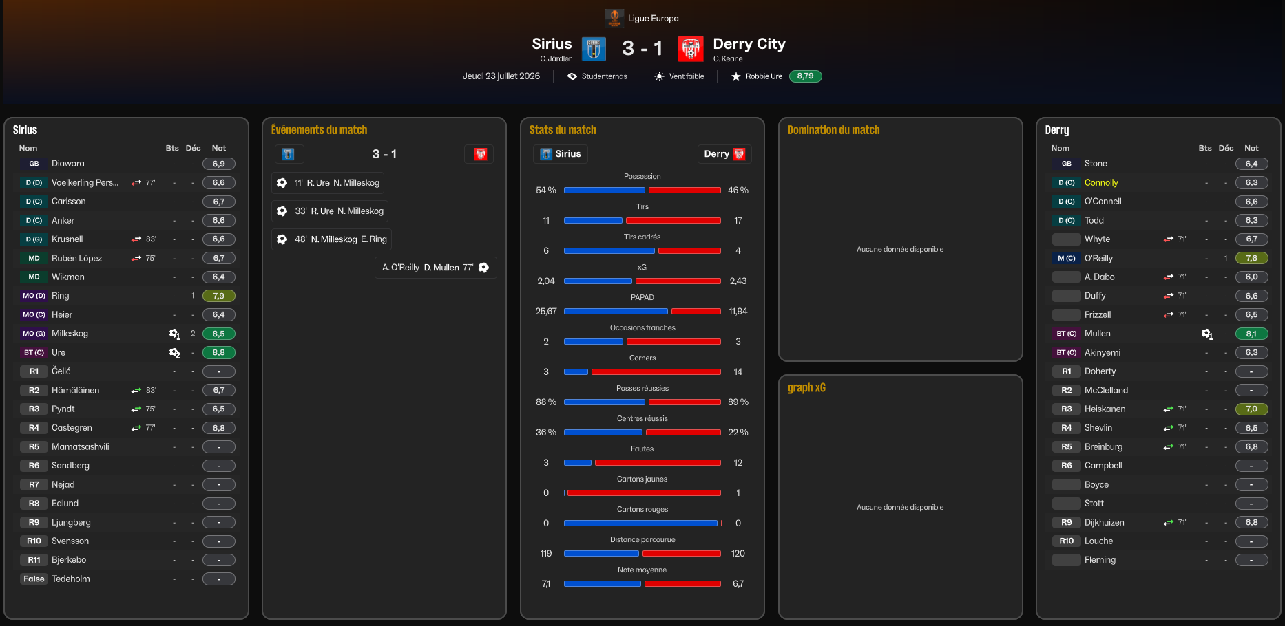 1-0 puis 2-0 et 3-0 au retour des vestiaires ! Donny Mullen marquera un but Ă lâentrĂ©e du dernier quart dâheure pour revenir a deux buts et tenter de crĂ©er lâexploit au Brandywell !