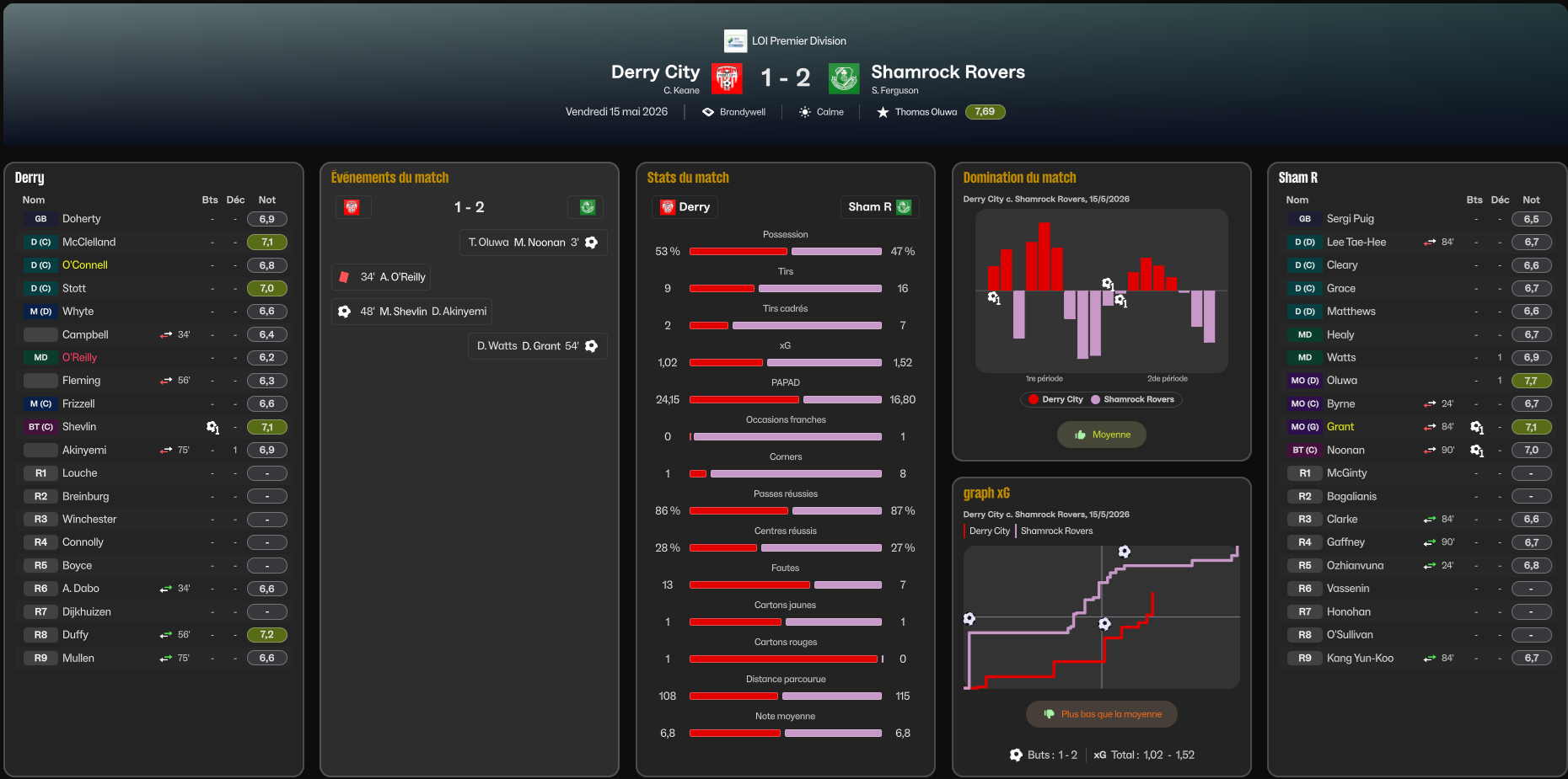 Les Shamrock Rovers viennent nous défaire au Brandywell dans un match assez houleux.