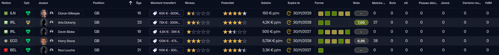 DĂ©ception pour Noa Louche que lâon aura pas vu cette saison, il faut dire quâArlo a Ă©tĂ© tellement bon quâil a enchainĂ© toutes les rencontres et quand Harry est arrivĂ©, notre portier belge a Ă©tĂ© envoyĂ© en rĂ©serve pour jouer. Il garde un certain potentiel, il faudra peut ĂȘtre envisager un prĂȘt ou alors le laisser partir.
