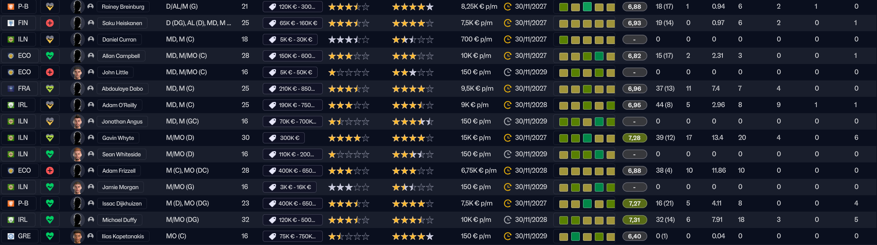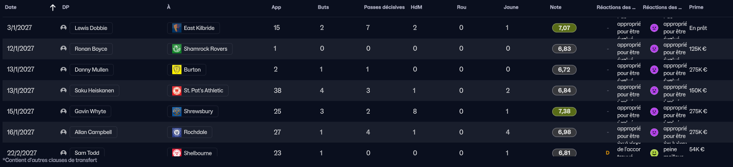 Nous allons également jouer les barrages de Champions League, mais en Juillet prochain, ce qui nous laisse donc la possibilité de récupérer des joueurs en fins de contrat dans 6 mois (comme ce fut le cas avec Harry Stones) car les joueurs en fin de contrat en ce moment (les joueurs du championnat irlandais en soit) ne seraient pas une grosse plus value dans notre effectif.