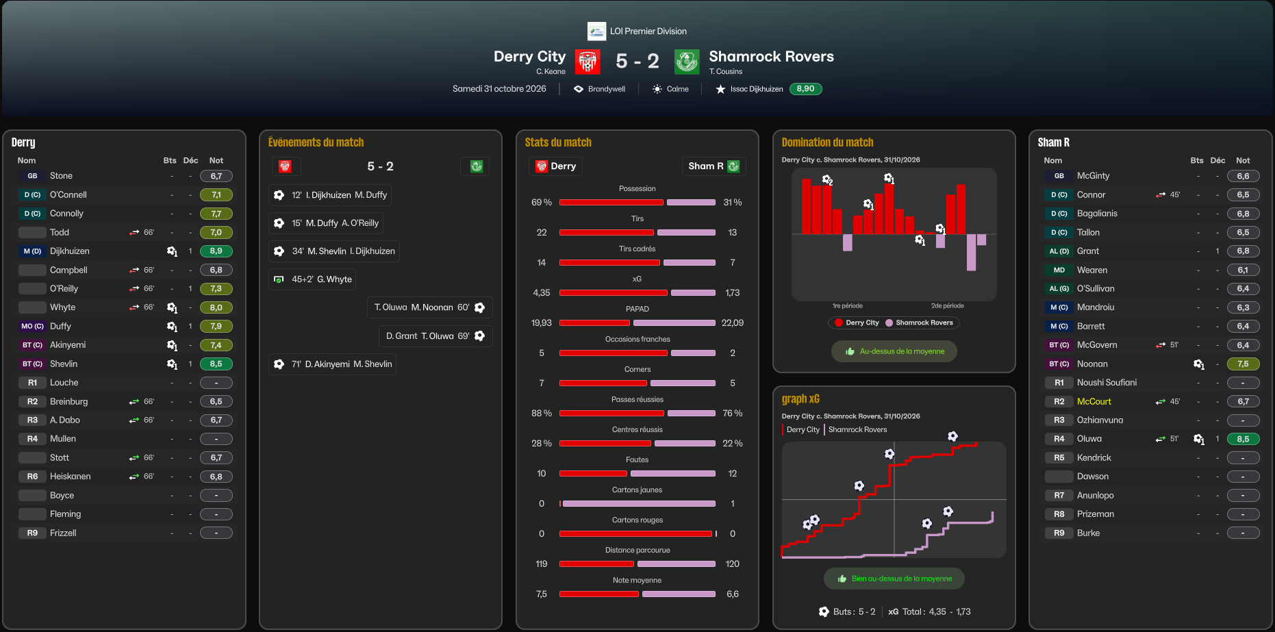 PassĂ© lâheure de jeu, les Rovers vont rĂ©agir et reviendront a 4-2 60â et 69â mais Dipo va inscrire le but qui va Ă©viter tout doute 5-2 71â