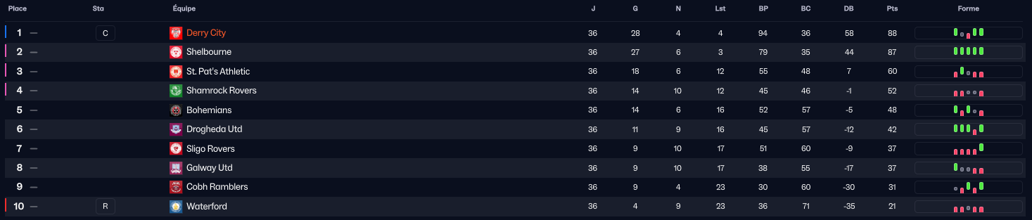 Constat : Lâeffectif du dernier de Championship est tellement meilleur que celui de Derry ! ![]()
