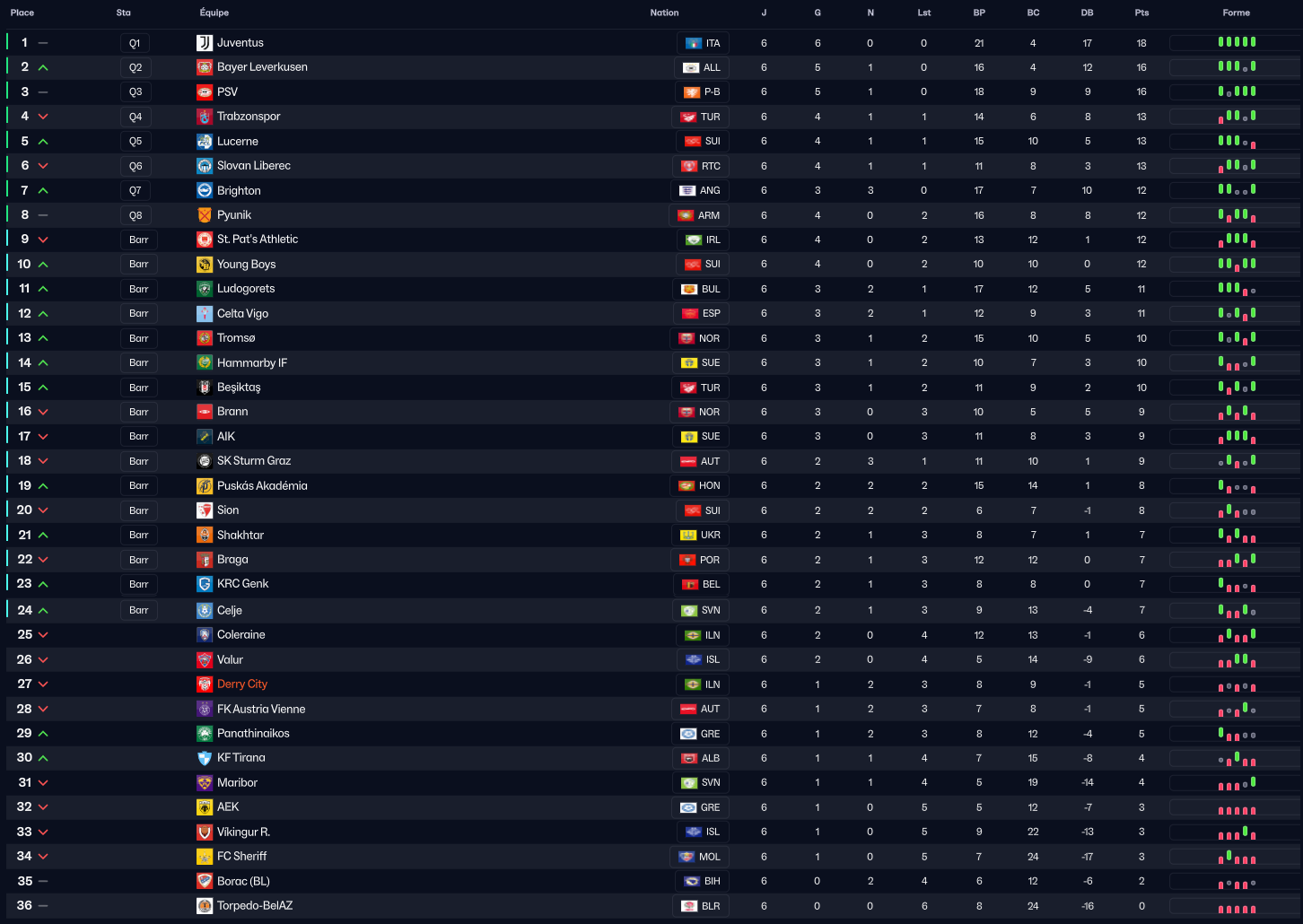 Tromso et Genk sont barragistes et également un gros coup de chapeau a St Pats qui termine Top 9 de cette phase !