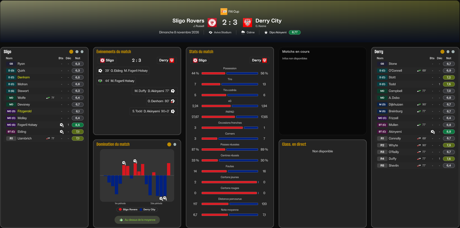 Nous sommes concentrĂ© sur nous mĂȘme, mais on peut entendre au sein du public que Shelbourne mĂšne 3-1 Ă Sligo !