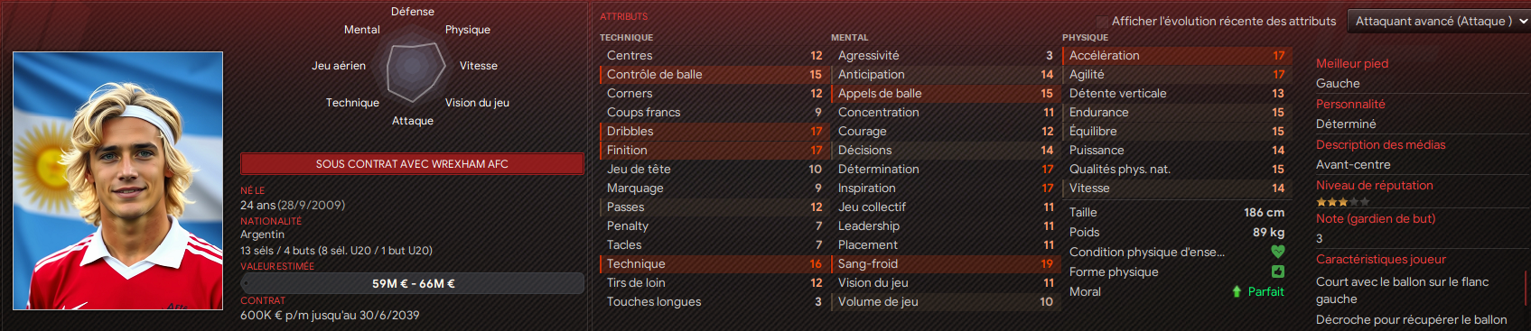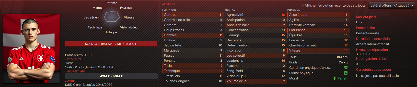 Joueur ultra-technique, dotĂ© dâune grosse pointe de vitesse et dâune dĂ©termination sans faille, il partira dans la peau dâun titulaire et devrait faire des Ă©tincelles sur le terrain !!