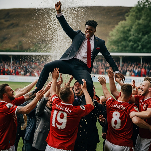 Ce dernier fit un discours sobre mais inspirant, promettant que « lâĂšre du Wrexham AFC ne faisait que dĂ©buter » et que ses joueurs Ă©taient prĂȘt à « se lancer Ă la conquĂȘte de lâEurope ». A la suite de cela, ses joueurs le saisirent puis commencĂšrent Ă le lancer en lâair pendant que ses adjoints lâarrosaient de champagne.
