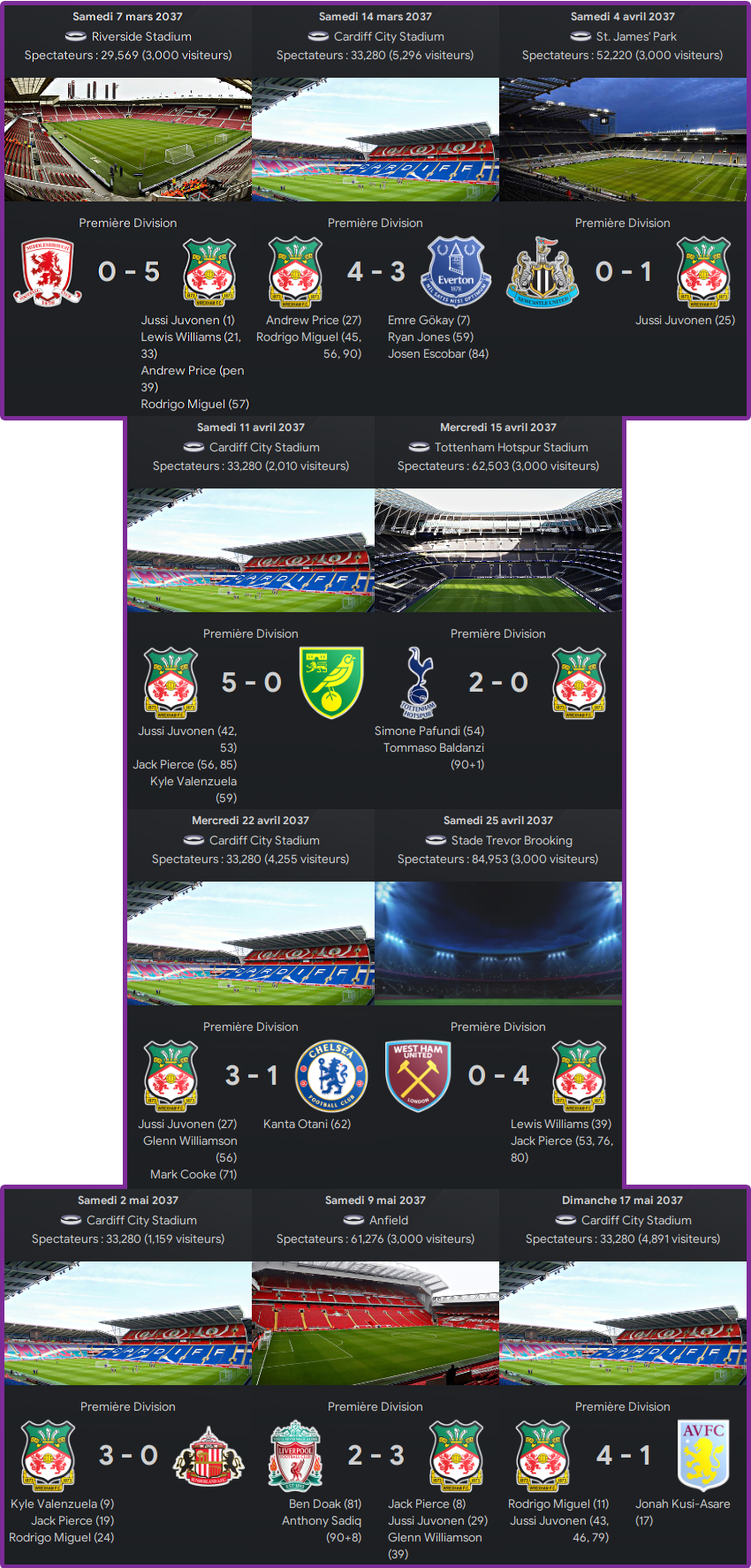 Et avec ces rĂ©sultats ⊠WREXHAM AFC EST LE CHAMPION DE PREMIER LEAGUE POUR LA SAISON 2036/2037 !! LâĂ©quipe galloise rĂ©ussit lĂ un extraordinaire doublĂ© !!