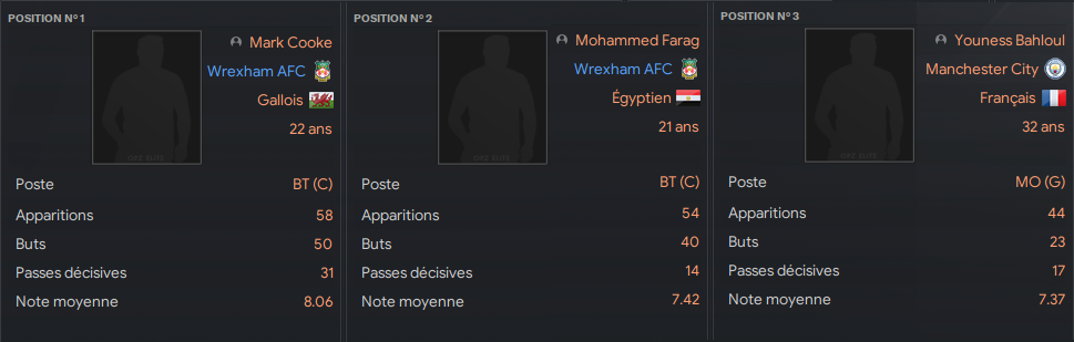 A souligner Ă©galement la seconde place dâun autre joueur de Wrexham, lâĂ©gyptien Mohammed Farag, qui avec ses quarante buts et ses quatorze passes dĂ©cisives a Ă©tĂ© Ă©galement Ă un niveau stratosphĂ©rique lâan dernier.